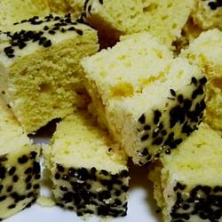5. Spread a layer of water on the surface of the cake, sprinkle with sesame seeds, cover, and steam for 30 minutes