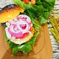 7. Take out the grilled hamburger embryo and take a photo, it’s not bad!