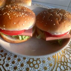 6.The burger is ready, a simple breakfast with a glass of orange juice