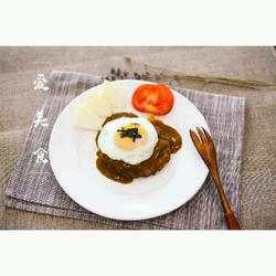 8.Pour the sauce onto the hamburger steak, cover with soft-boiled eggs, and serve with some fruit