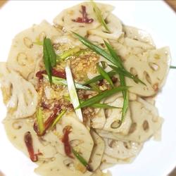 14.Pour the prepared sauce into the lotus root slices, stir well and serve on a plate