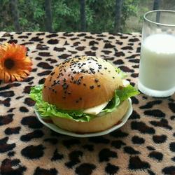 6. Cut the burger embryo in half and brush it on Brush half of the salad dressing with tomato sauce and sandwich the patties with lettuce and cheese slices to complete