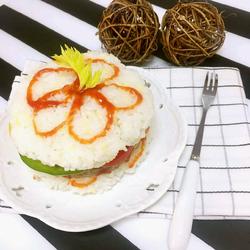 6.Make rice burgers, one layer of rice embryo and one layer of meat patty