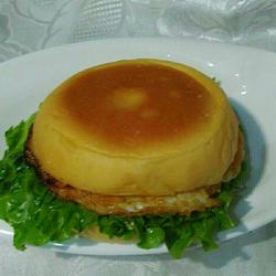 4.Put the cooked eggs on the lettuce, and then put the milk buns on it.