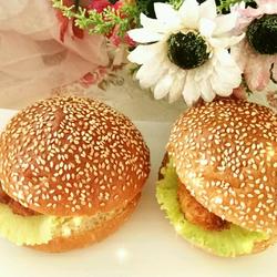 3. Spread on bread Put the cabbage leaves in the salad dressing and add the chicken nuggets, and the delicious burger is ready