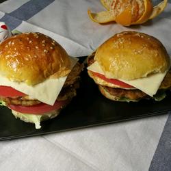 6.Assemble yourself after frying, hamburger embryos, lettuce, steaks, fried eggs, tomatoes , cheese slices.The deluxe burger is ready.