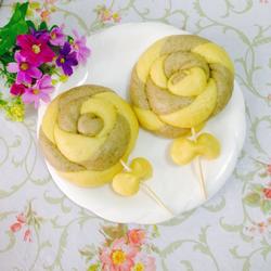 1.Prepare two clean bowls, one is flour and cornmeal, the ratio is 3:1, the other is flour and red bean powder, two spoons of red bean powder is enough