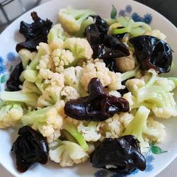 5.Use the hot water used to blanch the cauliflower, turn on low heat and blanch the fungus again.When you see the fungus becomes larger and softer, That's it.