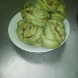 1. First pour the spinach juice, flour and all the seasonings into a basin, then I will make the dough, then let it rise, and then roll out the dough after it is new.Make it into a dough pancake, then put the meat floss in it, then roll it up and put oil in it, then put the oil in it, then roll it up, then cut it into small pieces one by one, then put it in, um, and then put it in two Stack the machines together, um, then press it with chopsticks, and then twist it again to form a um, um, flower roll shape, and then wake up for ten minutes