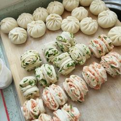 10. Roll it up and cut it into two pieces.Stack them together and press them down with chopsticks.Pull both sides down with your hands.Knead them together, let them rise for 10 minutes, steam them for 20 minutes, then turn off the heat and simmer for 2 to 5 minutes, then take them out and eat