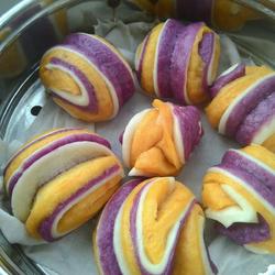 1.Knead the noodles and wait for the pumpkin, When the purple sweet potato puree is cool, add yeast