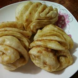 7.Put water in the pot and let the water open.In the steamer, place the flower rolls and steam them for 25 minutes, then remove from the pot