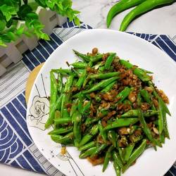 8.Put in the blanched green beans.
