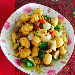 4.Add onions, green peppers, bean sprouts and carrots, stir-fry for a few minutes, add fresh soy sauce and salt
