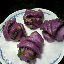 1. Add 200 grams of purple sweet potato flour, 3 grams of yeast powder and 20 grams of white sugar to an appropriate amount of warm water and stir into a dough.Wrap in plastic wrap and ferment until doubled in size