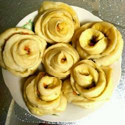5. Roll up from the bottom, roll it firmly, and then press it in the middle with chopsticks a few times, ( I forgot to take a picture of this) Use a knife to cut off and arrange the petals.I made a flower bone in the middle.