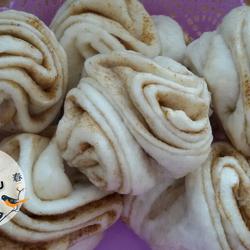 4. Roll up from one side and cut into equal amounts of evenly shaped flower rolls.