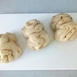14. Grease the steamer with oil, put the flower rolls on it, cover the pot, and ferment for 20 minutes.