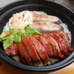 •  Illustration of how to make sea fish barbecued pork claypot rice 2