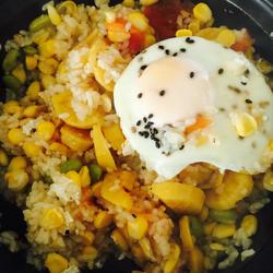 2. Add corn kernels and broad bean kernels, or according to personal preference Add cooked vegetables such as carrots, peas, winter bamboo shoots, etc., make sure there is a certain amount of moisture.