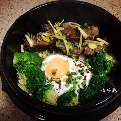 5.After soaking the Thai fragrant rice, use it first Bring to a boil over high heat, then reduce to low heat and cook slowly.When the rice is almost ready, put the cured pork ribs, eggs, and shredded ginger into the pot.Pour cooking oil around the edge of the pot.When the rice is completely cooked, add the broccoli and turn off the heat.After ten minutes, add the onions and seasonings to the pot, stir and serve.