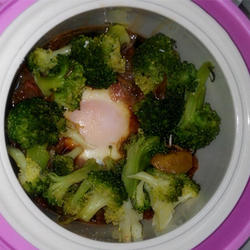 2.Select the steaming function and steam until the rice is about 25 minutes old.Poke a few small holes with chopsticks and place the washed and thinly sliced bacon and sausages in a circle around the rice.Finally, crack an egg in the middle and continue steaming for 20 minutes.