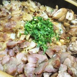 5. Add the roasted green onions and heat for a while, then slide the oil and soy sauce in from the lid.