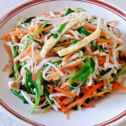 9.Add carrot shreds and stir-fry.