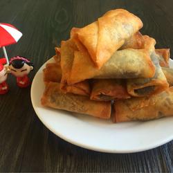 9. Remove and release when the color turns golden.Use absorbent paper to absorb excess oil.Come and taste the delicious spring rolls!