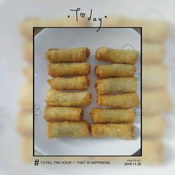 7.Change to low heat and gently add the wrapped spring rolls!