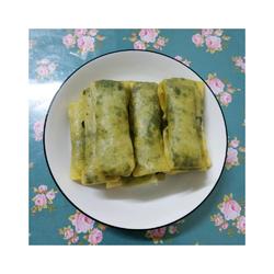 4. Pour an appropriate amount of oil into the pot, heat it to 60% heat, add the spring rolls, fry until golden brown, take them out, drain the oil, and put it on a plate.