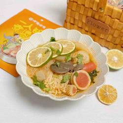 10.Cook until the enoki mushrooms and rice noodles become soft.Sprinkle with coriander and lime slices