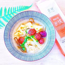 2. 100 grams of water-opened fragrant rice noodles, After the rice noodles are softened (about 30 seconds), stir and loosen, then immediately turn off the heat, cover the pot, and simmer for 10 minutes;