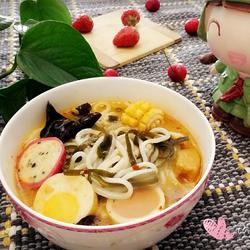 The whole process only takes about ten minutes.It is not easy to cook the rice noodles for too long, and the secret seasoning is added appropriately.Add side dishes according to personal preference.