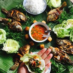 8.Use package Dish, add rice noodles, fish, coriander and chili sauce and eat them together