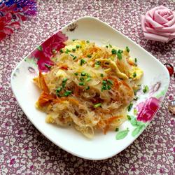 7. Drain the rice noodles and put them into the pot and stir-fry.Add appropriate amount of salt and soy sauce and stir-fry over medium heat