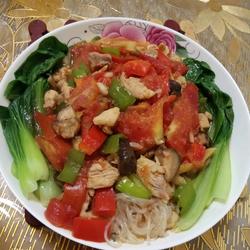 5. Stir-fry chicken, mushrooms, green and red peppers, and set aside on a plate.