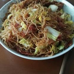 Bacon ( 3 slices ) | Baby cabbage ( 1 piece ) | Rice noodles ( 1 serving ) | Lard ( 1 tablespoon ) |