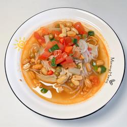 6.Put in 10g of rice vinegar, 2g of salt, spicy millet, chopped green onion, and peanuts~