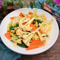 Cook the cauliflower in advance until it changes color, because the cauliflower It needs to be cooked before it can be eaten.Pay attention to cooking it until it changes color, then add the other ingredients and cook it together, so that all the ingredients will be cooked together.
