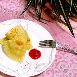 16.Add appropriate amount of fillings and dip some water on the edge of the dough17.Fold in half into a dumpling shape and use a fork to press the edges of the dough