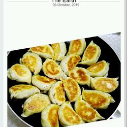 Heat a pan, apply a little oil, put the pot stickers, and Heat evenly and slightly, pour half a small bowl of water, cover the pot, and simmer for a few minutes.Be careful not to make the fire too high