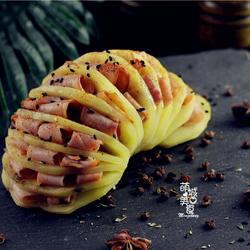 5. Stuff the cut ham pieces into In the gaps between potatoes.