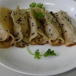14.Sprinkle black sesame seeds on the pot stickers, add one-third of the water, then cover the pot and cook