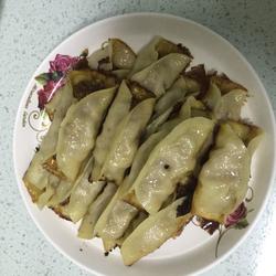 4.Put oil over low, fry the pot stickers until the bottom is browned, then mix water with flour and pour it to half the height of the pot stickers, cover the pot, wait for the flour and water to fully evaporate, and the pot stickers are ready to be taken out of the pot