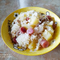 1. Wash the rice, meat, ginger, sausage, potatoes, onions Dice.