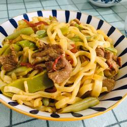 13. Simmer until the soup is dry, turn off the heat, shake the noodles and vegetables and mix well.