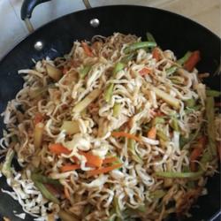 1.Put the onions first Mince the ginger and garlic.Before doing this, mix the noodles first so that they are moderately soft and hard.