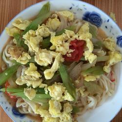 5.Add tomatoes, celery and stir-fry for a few times.Add noodles