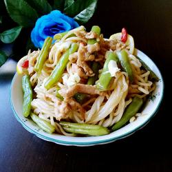 8. The lentils and noodles will gradually become soft, reduce the juice over low heat, and stir-fry intermittently , add minced garlic after 15 minutes and serve;